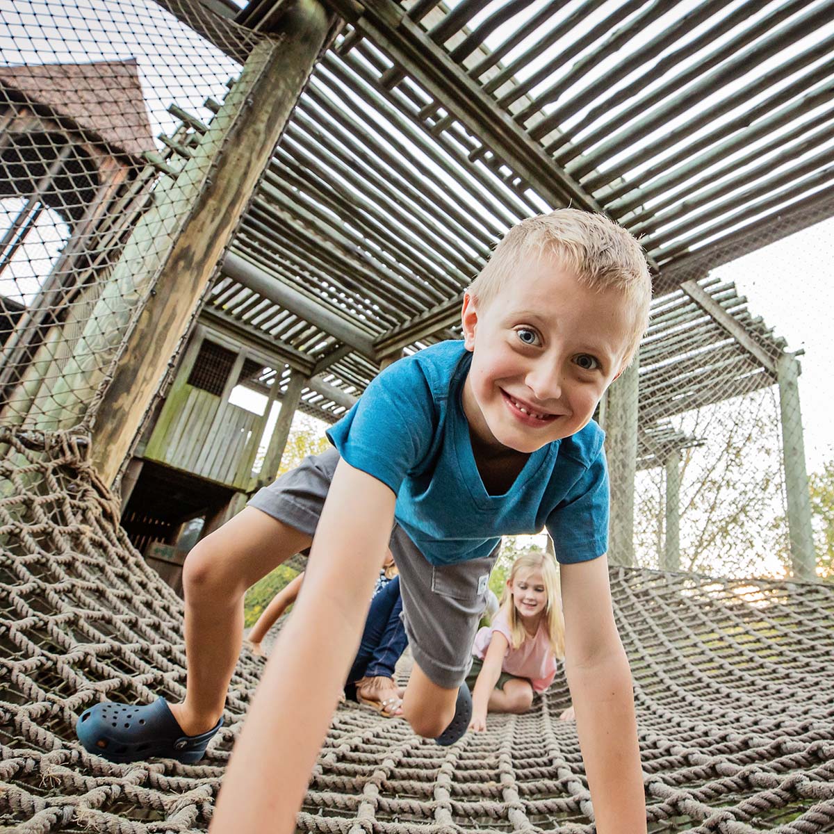 Nashville Zoo's Jungle Gym is the wildest place for a high-flying, high-swinging adventure! Come swing like a gibbon, run like the zebras and prowl around tiger-style in the 66,000-square foot playground. Jungle Gym features a 35-foot tall tree house structure, super slides, swings, and giant snake tunnel.