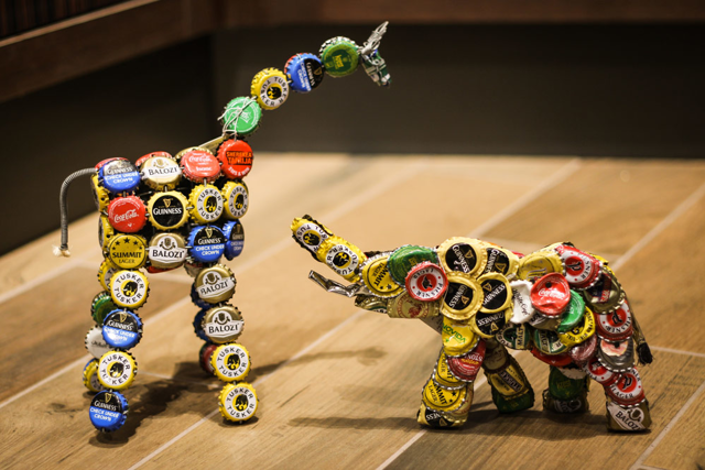 - Spice up his room with a custom Green Eco animal figure made from recycled bottle caps and tin cans from Coke, Diet Coke, Fanta, Red Bull, Guinness beer, Tusker beer, and many others.