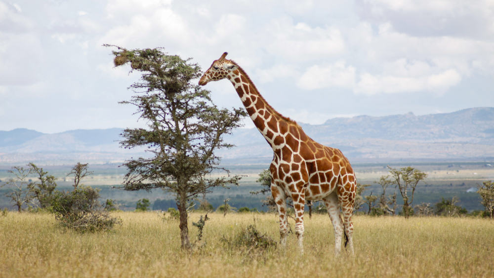 Reticulated giraffe in the savannah near Nanyuki, Kenya