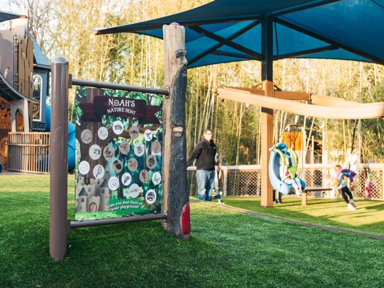 Jungle Gym renovated features include a 35-foot tall house structure with a slide, a giant snake tunnel and a multi-level net area. New features include additional climbing structures, slides, ZipKrooz, we-go-round, two-level spinning globe and more.