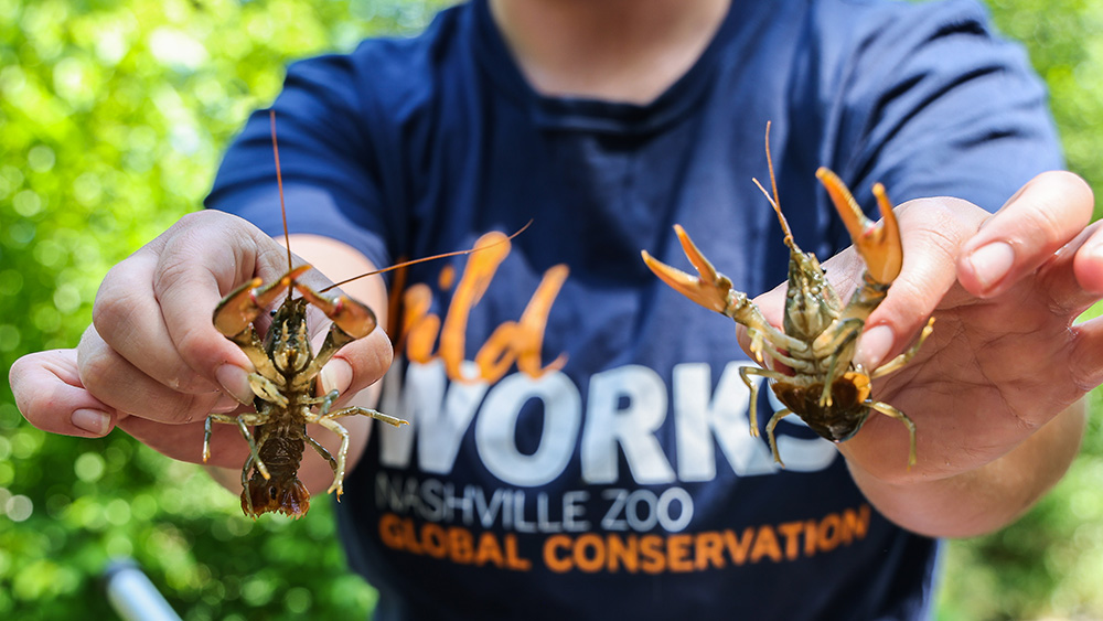 Our aquatics team continued to participate in conservation work right here in our Middle Tennessee neighborhood by monitoring the federally endangered Nashville crayfish populations.