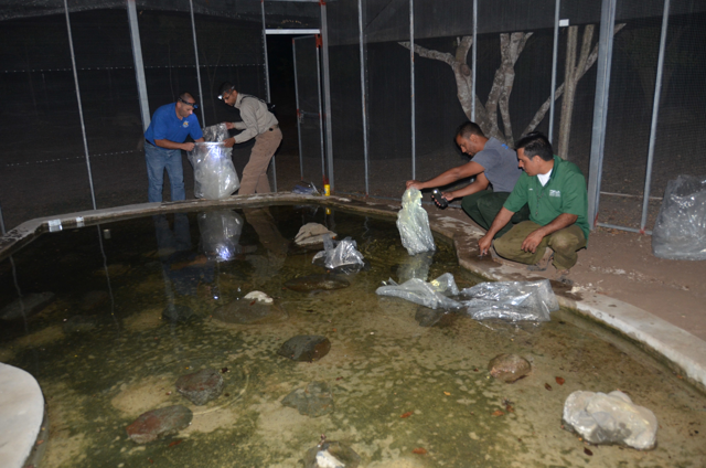 Each tadpole shipment requires months of coordination and planning. On the day of shipment, our herpetology staff transfers tadpoles into bags of water and pure oxygen and ships them to U.S. Fish and Wildlife Services (USFWS) in Puerto Rico. They are driven directly to the release site along with tadpoles from other zoos for release. The May 7 release included over 22,000 tadpoles from Nashville Zoo, Detroit Zoo and Omaha’s Henry Doorly Zoo. After release, the tadpoles are monitored by the USFWS and the Puerto Rico Department of Natural and Environmental Resources (DNER) until they metamorphosed and dispersed from the release pond.