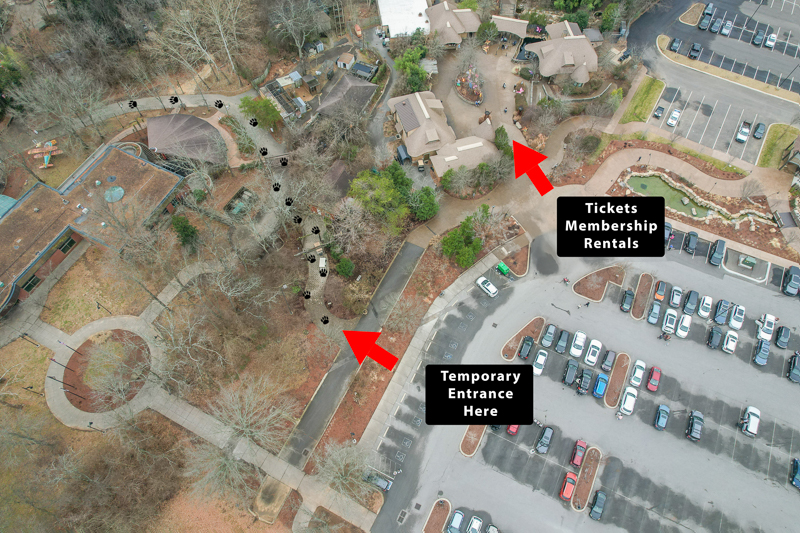 Signs will direct visitors to the temporary entrance. Our Ticketing, Rentals, and Membership buildings will all remain accessible, allowing guests to purchase admission, utilize member services, and rent strollers, electric scooters or wheelchairs.