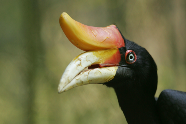Rhinoceros hornbills are fairly large birds that need large hollow spaces to lay their eggs and care for their young.
