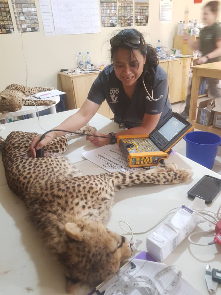 Because of the scarce in-country resources, CCF contacted Dr. Margarita Woc Colburn to help assist with the cheetahs. Dr. Woc Colburn assisted with the care of these confiscated cheetahs by acting as one of the veterinary consultants, utilizing her cheetah expertise.
