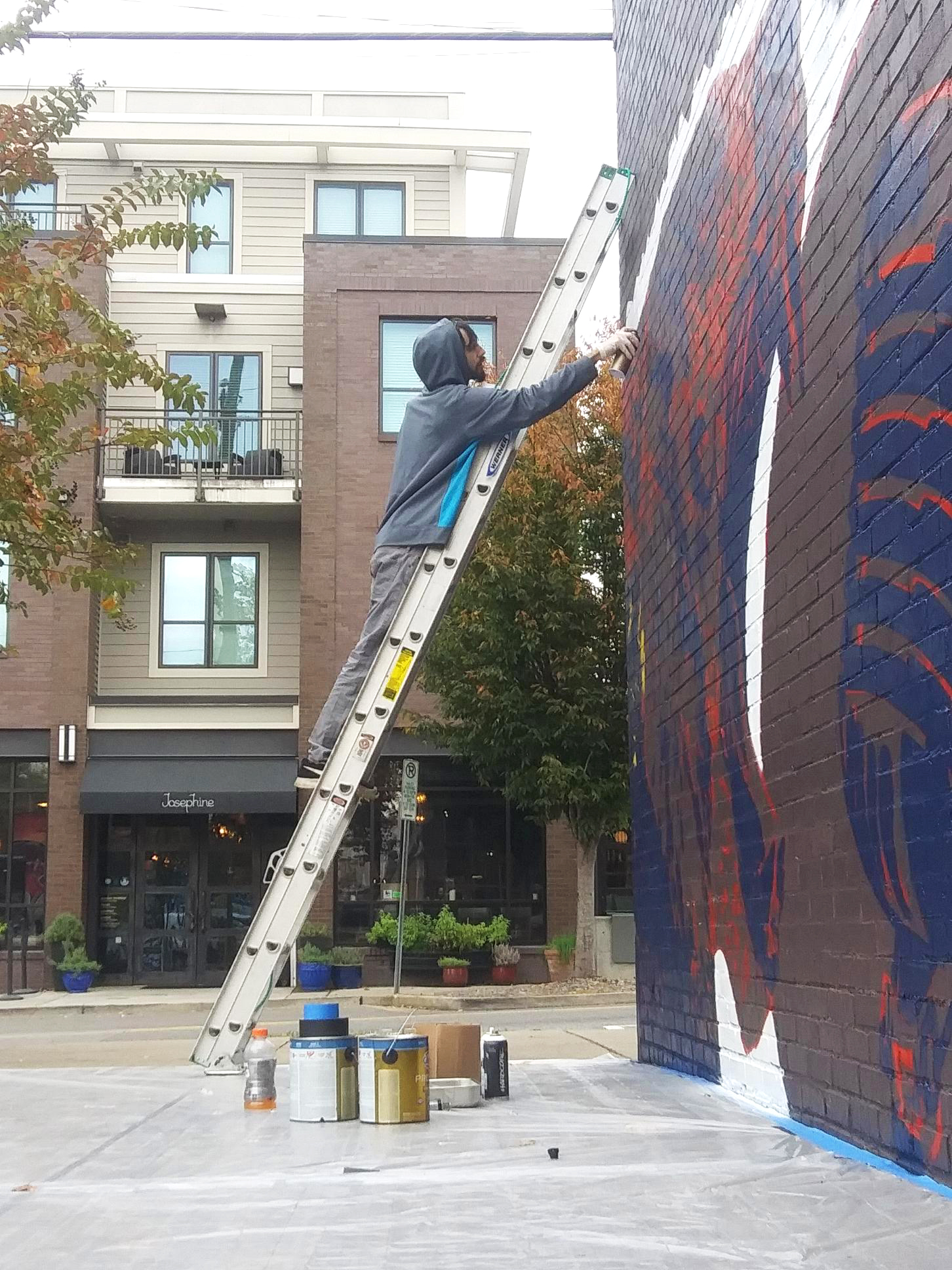 Nashville Zoo’s multimedia designer, Kate Johns, collaborated with muralist Stephen Sloan of Never Xtinct (@neverxtinct) who brought the design to life through the use of spray paint and custom stencils. The building is owned by 1221 Partners LLC.